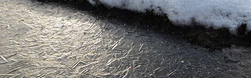 Het ligt er weer op sommige plaatsen, maar te dun: natuurijs. Enkele wat koude nachten hebben her en der weer voor wat natuurijs gezorgd. De dikte blijft echter beperkt doordat het op veel plaatsen onvoldoende vriest in de nacht en de temperatuur