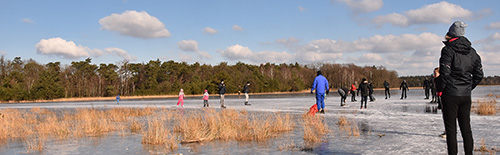 Dinsdag 27 februari werd op vele plaatsen in ons land het ijs betreden. Vaak met goed gevolg: de meesten waren voorzichtig en namen geen risico en bleven op ondiepe wateren op grote afstand van windwakken of toegevroren windwakken. Een enkeling moest het bekopen met een paar natte voeten. Na de nacht met strenge vorst tussen dinsdag en woensdag zal het ijs zeker sterker zijn, maar blijft het oppassen geblazen: er zitten nog steeds verraderlijke plekken in het ijs, waar je ze niet verwacht.