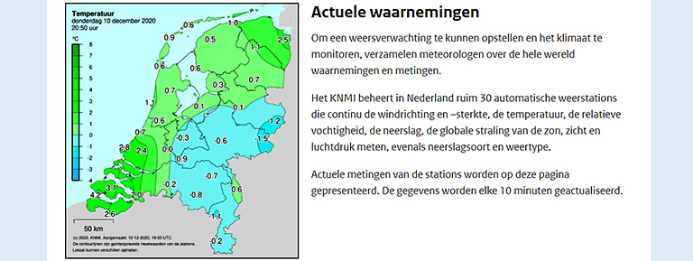 De waarnemiungen van de KNMI stations geven een mooi beeld