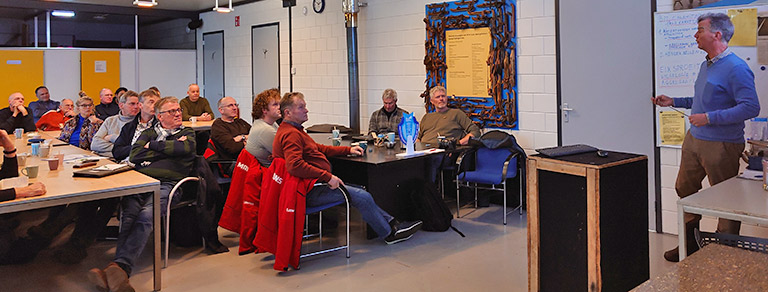 Natuurijsmeesters van diverse delen van het land waren uitgenodigd om een kijkje te nemen op de voorbeeldijsbaan in Nederland, de sproei-combibaan Winterswijk, waar maar liefst 13 dagen kon worden geschaatst in de miniwinters in afgelopen seizoen. Compleet met eerste marathon op natuurijs op 9 januari 2024. Voorziter Auke Spijkstra zorgde met alle vrijwilligers voor een warm welkom. Een lekker brandende houtkachel en een schaatskantine vol belangstellenden zorgden met het levendige verhaal van ijsmeester Hendrik van Prooije dat de stemming er al vroeg in zat. Het verhaal over het ontstaan van de huidige baan zat eigenlijk al vol leermomenten voor ijsclubs elders in het land. De praktische vragen uit de zaal gaven nog eens duidelijk aan hoeveel belangstelling er is om van elkaar te leren.