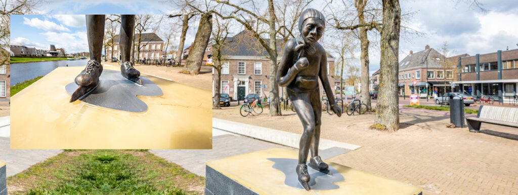 Kunstenares en ontwerpster Leeuwerik kan opgelucht ademhalen nu ‘haar Paping’ terugkeert op zijn plek aan de rivier. De vrouw uit Arriën zag haar kunstwerk voor de tweede keer in gruzelementen eindigen. Ook in 2018 werd het 90 centimeter hoge beeld namelijk al eens te grazen genomen door vandalen, nadat een vrachtwagentransport het broze beeld ook al geen goed deed. De schaatser heeft immers dunne beentjes en smalle schaatsjes die rusten op de sokkel.