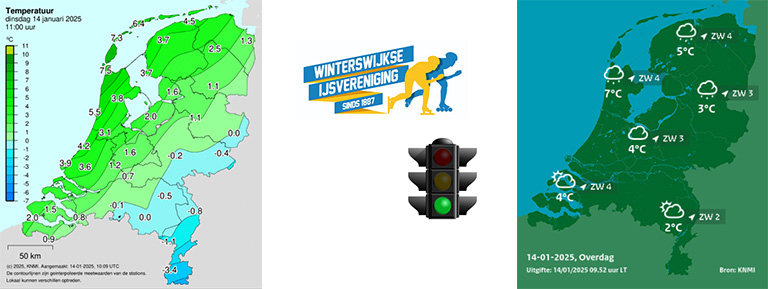 Nederland is een klein landje aan de Noordzee. Dat zullen we weten, want terwijl het in Duitsland en België aardig wintert, zitten we vaak in een overgangsgebiedje. In Zuid-Limburg viel vorige week sneeuw en daar is het ook duidelijk kouder, mede door de uitstraling van de sneeuw. In gebieden met sneeuw blijft de kou vaak langer hangen. In Oost-Nederland is het ook een stukje kouder. Mooi voor plekken zoals Winterswijk, waar de ijsclub al een ijsvloer kan hebben bij enkele graden onder nul of zelfs alleen al bij vorst aan de grond. Maar ook daar is het lastig om enkele dagen achter elkaar ijs te hebben onder de huidige omstandigheden. Maar voor nu staat het licht daar weer even op groen. En hopelijk lukt het later in de winter langduriger groen te houden.