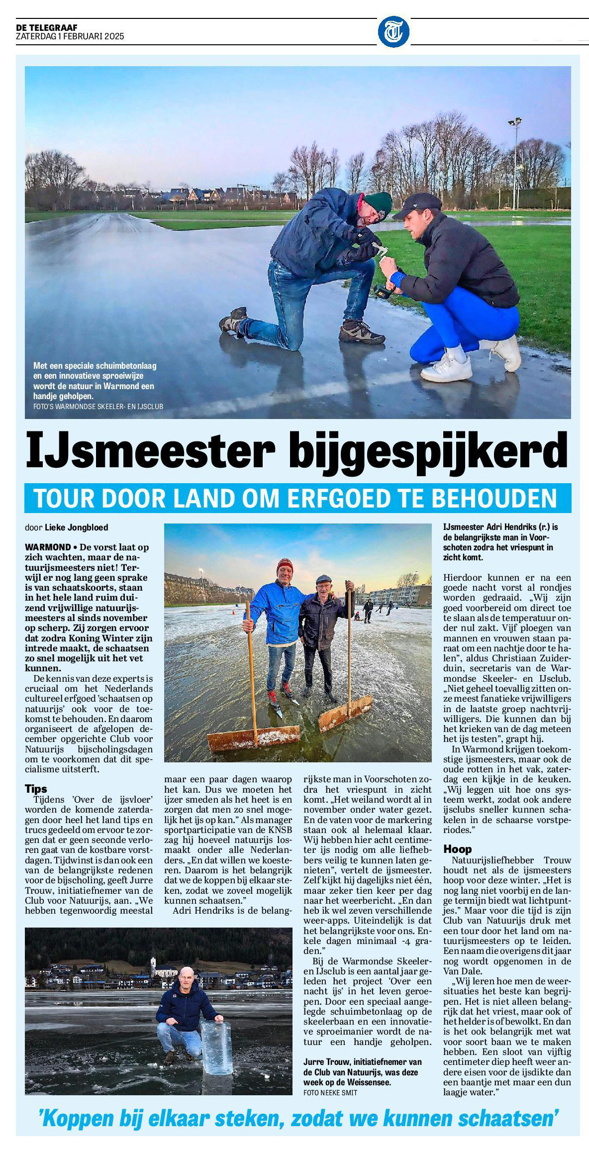 Om te werken aan kennisuitwisseling tussen de diverse ijsclubs heeft de KNSB het Natuurijsmeestersgilde in het leven geroepen. Zaterdag 1 februari waren diverse ijsmeesters bijeen in Warmond en later in de winter zijn ook samenkomsten ook in Noordlaren. Op zondag 2 februari waren de ijsmeesters van de Lier, Noordwijk, Doorn en Winterswijk erin geslaagd een ijsvloer te realiseren