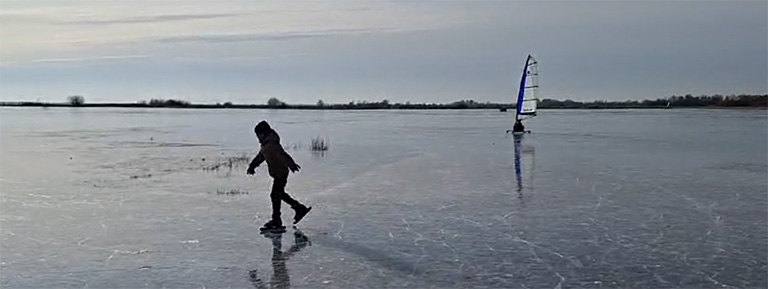 Heel Nederland is in de ban van het natuurijs als er ook maar een dun vliesje ijs op het water ligt. Sterker nog: als het alleen al begint te vriezen. Maar de nuchtere Friezen gaan er toch wat anders mee om. Ze zijn het geduldig afwachten wel gewend. Zo gaat dat al eeuwen. Ze gaan niet op zoek naar de plekken die het Journaal halen, maar weten uit ervaring waar ze moeten zijn. En dat kan op veel plekken. En daar zijn niet alleen schaatsers te vinden. Pieter Bult stuurde ons deze foto’s van de laatste slagen op natuurijs bij de Griene Dyk naast het Sneekermeer 19 februari 2025.
