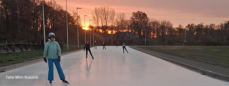Nog voor de zon opkwam stonden de eerste schaatsliefhebbers op het ijs. Later kwamen meer schaatsliefhebbers af op het Winterswijkse ijs. Inmiddels staat de baan van de Winterswijkse IJSvereniging bekend om het vroegste schaatsijs van het land. Onlangs werd de ijsvloer van de baan voorzien van eeen witte toplaag om de warmte en zon zoveel mogelijk tegen te houden.