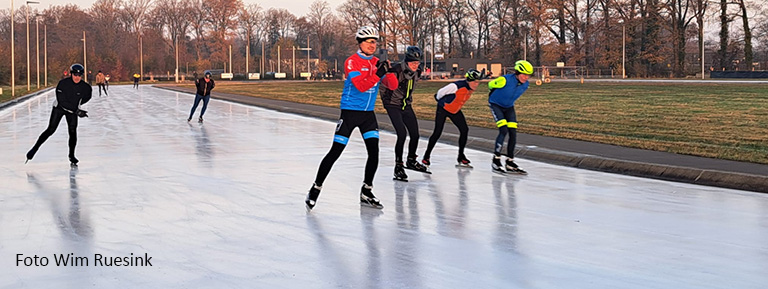 Ook zondag 23 november kon op de ijsbaan van Winterswijk geschaatst worden. De overgebleven 3 mm ijs van zaterdag werd door het nachtelijke sproeien tot een ijslaag van 1 cm aangevuld. Toch mooi weer twee schaatsdagen zo vroeg in het seizoen!
