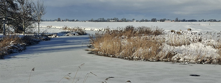 De dikte van het ijs en de sneeuw varieert van plek tot plek in de provincie Friesland. Wie weet blijft Koning Winter toch nog even hangen en komt er meer kou de noordelijke provincie binnen. We wachten rustig af en genieten ondertussen van het winterse landschap.