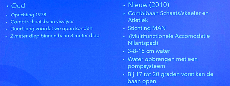 In 2010 is de ijsbaan in een nieuwe fase gekomen: een gecombineerde skeeler- en atletiekbaan. Gebleken is dat je in totaal zo’n 17 tot 20 graden vorst nodig hebt om de laag water die op de baan gepompt is tot bevriezing te krijgen.